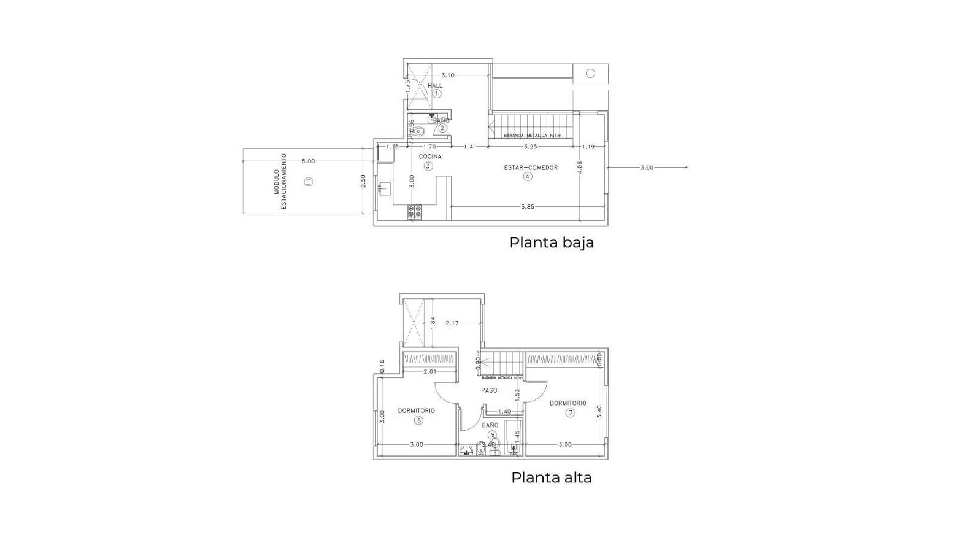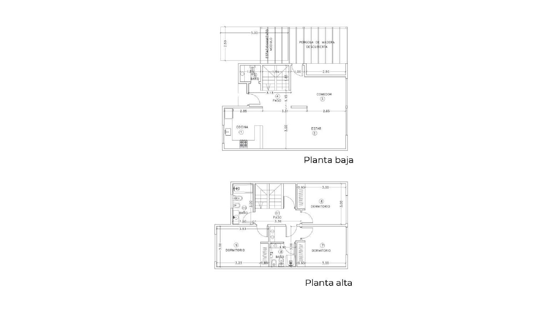 En planta alta, las unidades de los bloques 1 y 2 cuentan con dos dormitorios con frentes de placard corredizos y un baño completo, mientras que las de los bloques 3 y 4 ofrecen tres dormitorios y dos baños completos.